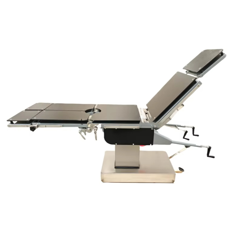 YGS3008A Spine Hydraulic operační stůl je vysoce výkonný zdravotnický prostředek, který je široce používán v různých operacích, jako je páteř, hlava a krk, hrudník a břicho, perineum, končetiny, porodnictví, gynekologie, oftalmologie, otolaryngologie a ortopedie. Operační stůl se skládá z čela, opěradla, bederní desky, kyčle a dělené nožní desky s flexibilními funkcemi nastavení, včetně sklápění nahoru a dolů, naklápění vpředu a vzadu, naklápění opěradla a stupačky doleva a doprava a přesného ovládání pomocí ruční kliky, šnekového převodu a regálového systému pro zajištění stability a pohodlí polohy pacienta během operace. Hydraulický zvedací systém je poháněn nožním hydraulickým čerpadlem, které se snadno ovládá, je stabilní a nehlučné a vyhovuje potřebám ordinací vyžadujících časté nastavování výšky. Dvouvrstvá konstrukce podporuje rentgenové snímání, usnadňuje zobrazovací vyšetření a zajišťuje přesnost operace. Operační stůl využívá desku z uhlíkové oceli potaženou nástřikem a nerezovou základnu a plášť sloupu, který má dobrou odolnost proti korozi a trvanlivost, což zajišťuje dlouhodobé a stabilní používání zařízení. Celkový design se zaměřuje na bezpečnost a stabilitu, poskytuje lékařům přesnou operační platformu a zároveň zajišťuje bezpečnost a pohodlí pacientů. Je ideální volbou pro víceoddělení operačních sálů.